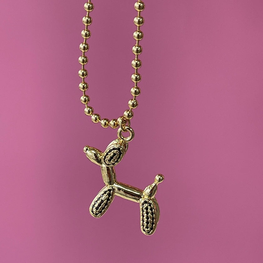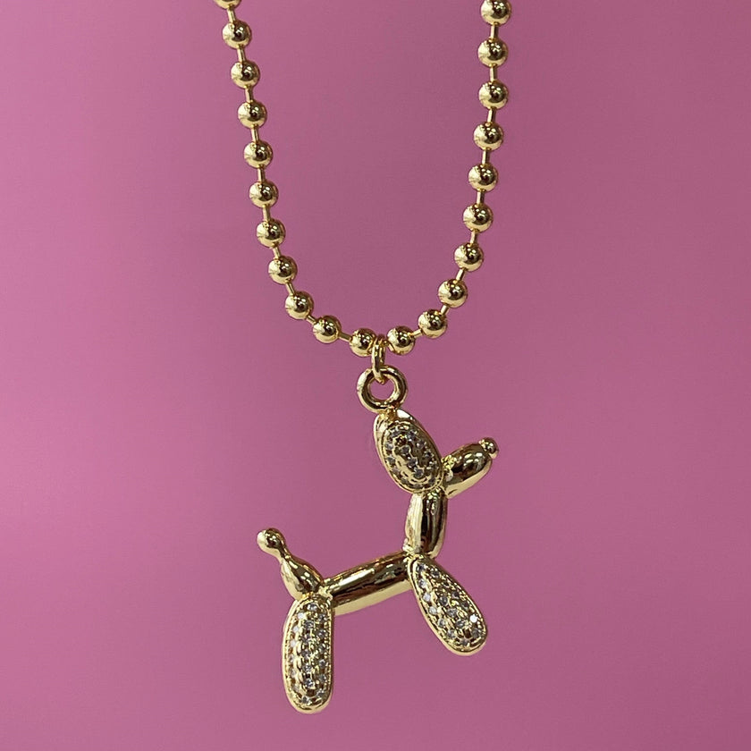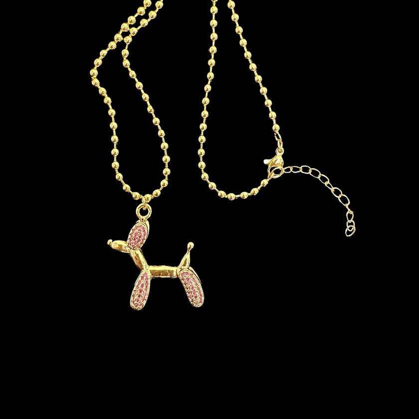 Gold Tone 16 inch Adjustable Rhinestone Balloon Dog Necklace - Clear