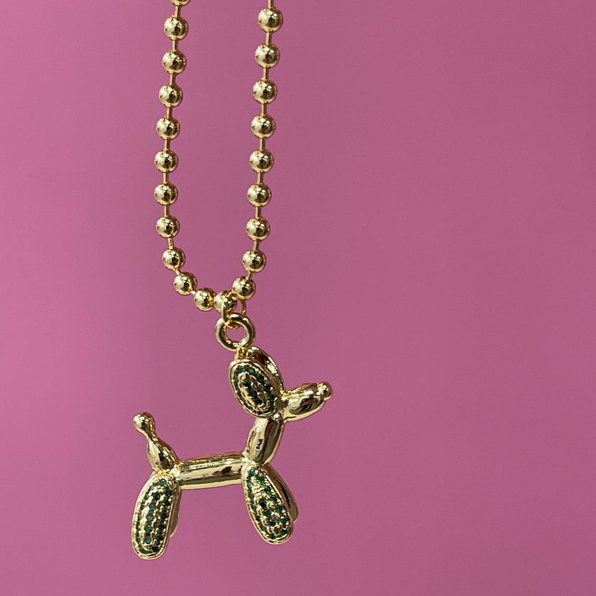 Gold Tone 16 inch Adjustable Rhinestone Balloon Dog Necklace - Green